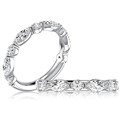 1. A.JAFFE Diamond Anniversary Band – A twist on a timeless classic features a row of alternating brilliant round and marquise diamonds set in polished 14K white gold. It's perfect for people who like refined elegance.
