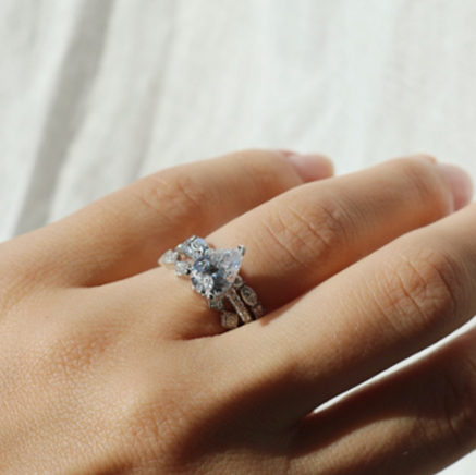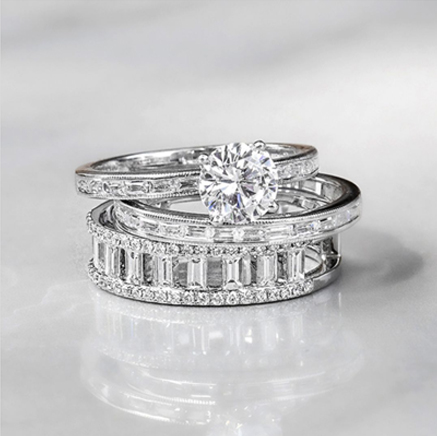 1. Stack Them with Engagement Rings: By incorporating a delicate pavé or diamond band to her engagement ring for a modern and effortless look.