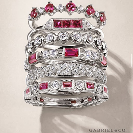 3. Gemstone Bands: Showcasing rubies, sapphires, or emeralds adds rich color to commemorate the anniversary month or partner's birthstone, adding significance to your ring stack.